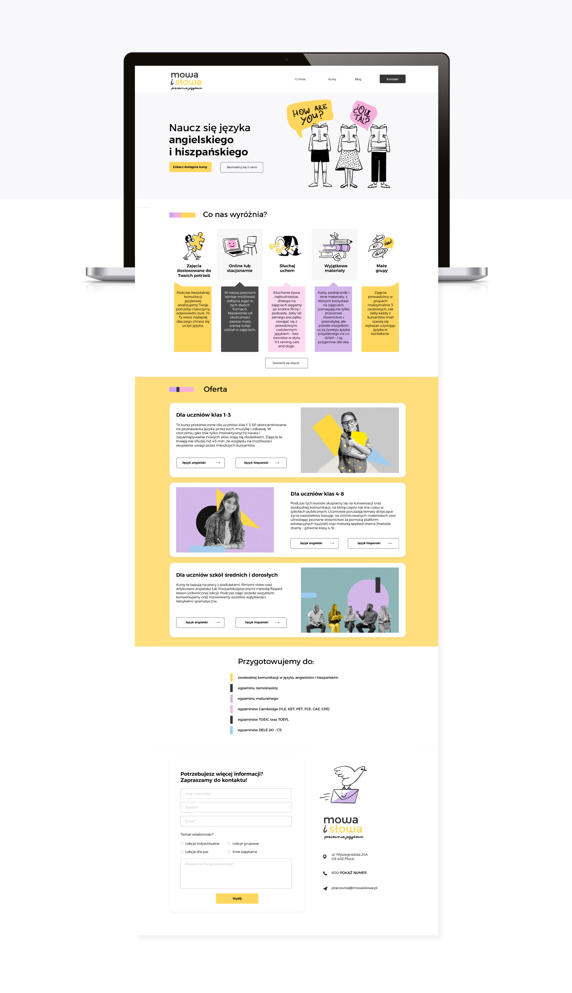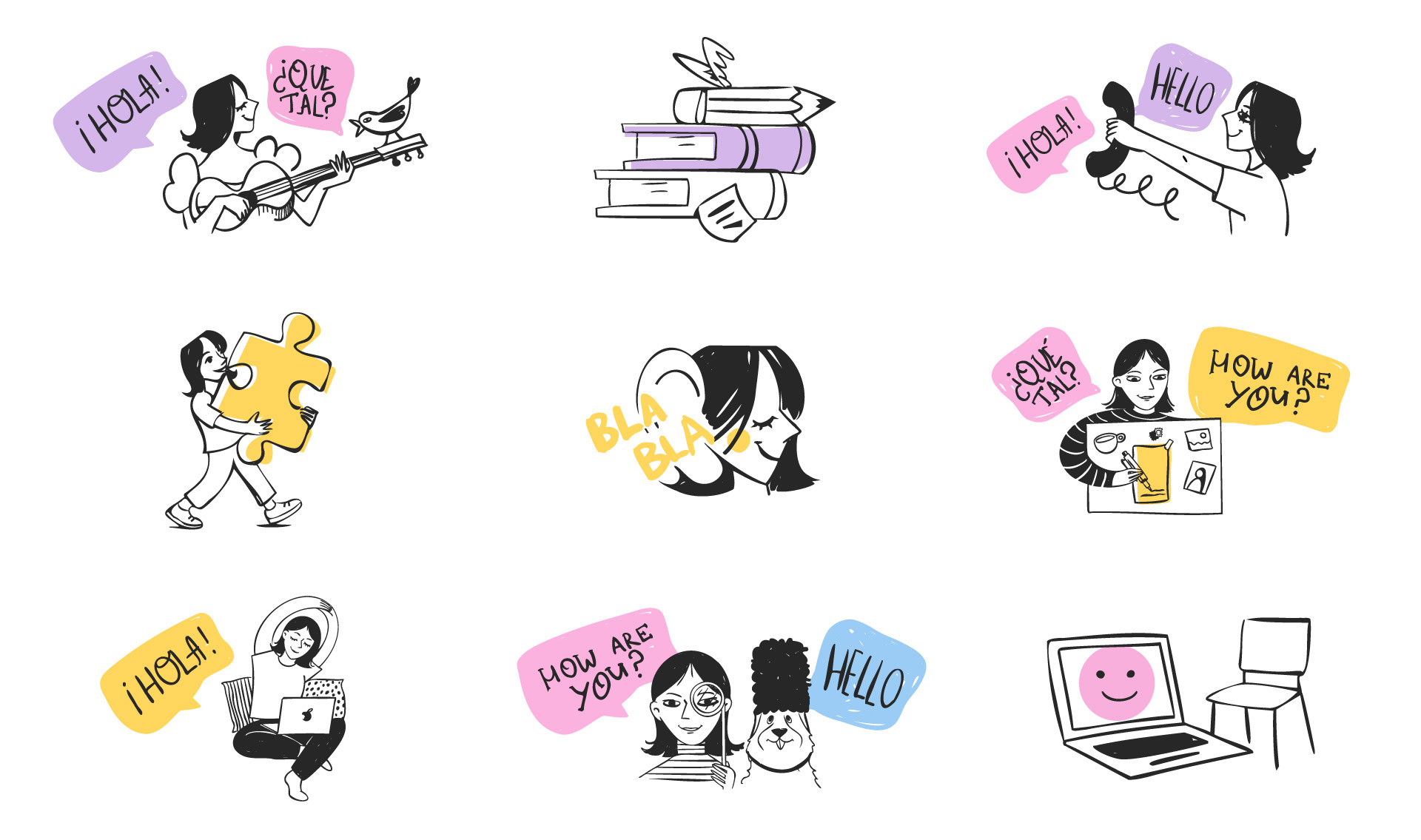 I created a main illustrated character representing the language school owner and teacher. The character became the face of the brand and appears across the website, helping to humanize the communication and make the learning experience feel more friendly and approachable.